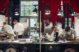 Nach der Preisverleihung heizte die energiegeladene Live-Performance von Knallblech den Gästen ordentlich ein. Danach folgte eine Weltpremiere: eine einzigartige Fusion von Big City Beats - Space Club Kitchen und Koch des Jahres präsentierte einen außergewöhnlichen Abend für alle Sinne. Zwölf Spitzen- und Sterneköche sorgten für kulinarische Highlights, während DJ Paul Lomax zusammen mit Live-Musikern den Grand Dome in eine Tanzfläche verwandelte