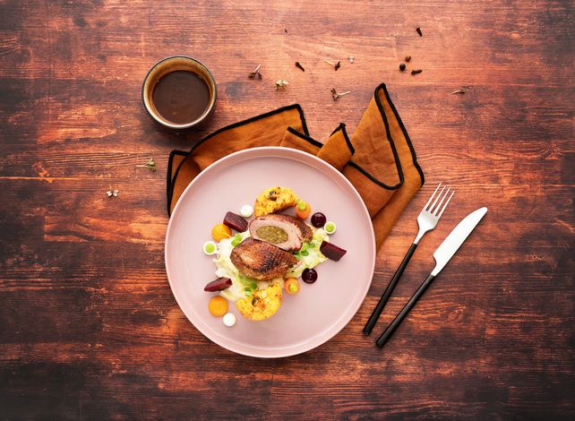 Facettenreiche Hauptkomponenten, deren Fokus auf herzhaftem Gänse- und zartem Entenfleisch liegt oder die alternativ mit feinem Wild, Rind oder Lachs begeistern, lassen sich mit den passenden Beilagen zu abwechslungsreichen Gerichten zusammenstellen. Eine kleine Auswahl: