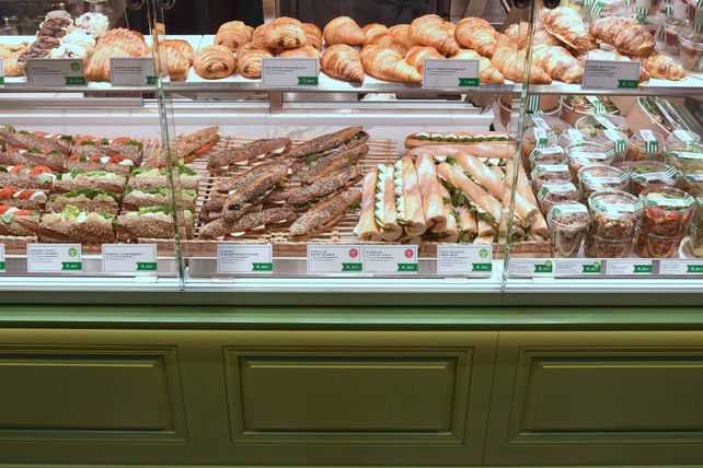 Auch Store-Design und Sortiment grenzen sich von anderen Le Crobag-Shops ab. Das typische Rot ersetzen bei Le Crobag Veggie eine grüne Front und Seitenwände aus Holz. Das passt zu dem weitgehend pflanzlichen Angebot und stimmt farblich mit den digitalen Menüboards überein, die Lust auf die Produktpalette machen. Le Crobag ist bekannt für französische Backspezialitäten, doch hat sein Angebot längst erweitert – für Le Crobag Veggie einmal mehr.