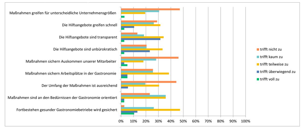Selbst das Kurzarbeitergeld sei in der Gastronomie weniger wirksam als in anderen Branchen: „Mitarbeiter rechnen steuerfreie Zuschläge und Trinkgelder fest in ihre monatliche Ausgabenplanung ein“, erklärt Rüther. „Wenn sie nun 60 Prozent ihres Nettoeinkommens als Kurzarbeitergeld bekommen, reicht das bei Weitem nicht aus, um alle Kosten zu decken.“ Aushilfen, die im Gastgewerbe einen großen Teil der Beschäftigten ausmachen, fallen durch das Raster. „Für sie und die Bezieher niedriger Gehälter muss das Kurzarbeitergeld deshalb unbedingt erhöht werden“, so Rüther.