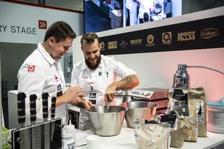 Im Workshop „Experience Taste – die sechs Geschmackssinne in einer Kreation“ by Valrhona präsentierte Patissier Hannes Radeck, Chefpatissier im „Ox&Klee**“ in Köln überraschende Kombinationsmöglichkeiten verschiedener Geschmackserlebnisse in einer Kreation. Patissier Jean Sivieude von SOSA Ingredients zeigte den Besucher:innen pflanzliche Alternativen für die Patisserie und wie sich damit moderne Tellerdesserts kreieren lassen.