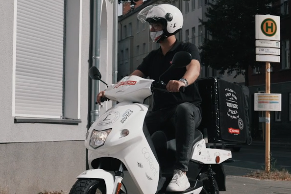Seit einigen Wochen wird die Pizza nun standesgemäß mit einem Fiat 500 geliefert. Für kürzere Wege kommen E-Bikes und E-Roller zum Einsatz. Jedes Fahrzeug der Flotte inklusive der Wärmetaschen ist gebrandet und mit Sprüchen wie „Scusi, falls ich etwas zu italienisch fahre“ beklebt. Als Fahrer sind die eigentlichen Restaurantmitarbeiter im Einsatz.