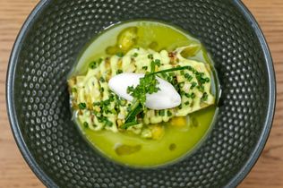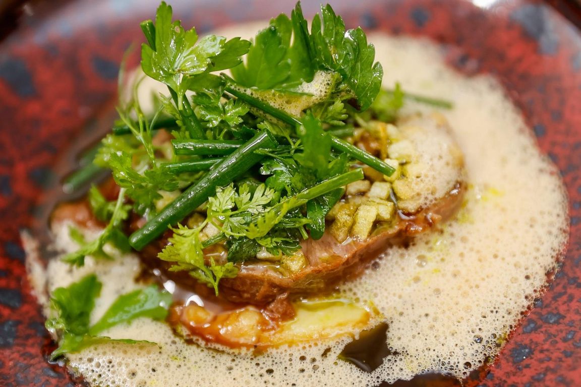 Gebackene Riesengarnele, Tatar vom Hessischen Bio-Rinderfilet, Zweierlei vom Thunfisch, Stundenei – das sind nur einige der saisonalen Vorspeisen-Kreationen aus Simon Kieslichs Küche.