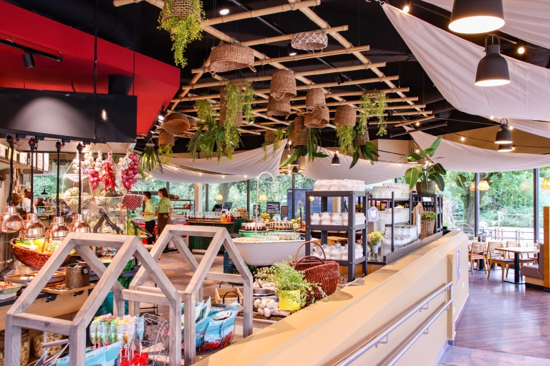 Nach dem Umbau erstrahlt das Zoorestaurant im neuen Glanz: Große Fensterfronten, bunte Farben, ein schöner Marktplatz, eine neu gestaltete Deckenkonstruktion aus Bambus und Segeln sowie natürliche und verspielte Details sorgen für ein einladendes Ambiente. Vor allem Familien kommen hier auf ihre Kosten: Mit einer Babystation, Kinderwagenparkplätzen und speziellen Kids-Menüs (bestehend aus einem Gericht, einem kleinen Softdrink nach Wahl und einer Überraschung) ist das Zoorestaurant optimal auf die Bedürfnisse von Familien eingestellt.