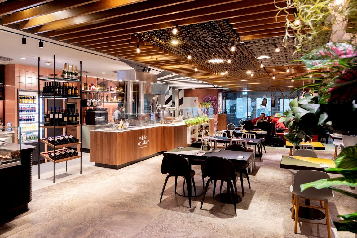 Ab sofort begrüßt das italienisch inspirierte Gastronomiekonzept "White Monkey – Pizza Lab & Bar" von Marché International auch am Düsseldorfer Flughafen Gäste. Das urbane Ambiente des Restaurants präsentiert sich als Mischung aus modernen und typisch italienischen Stilelementen.
