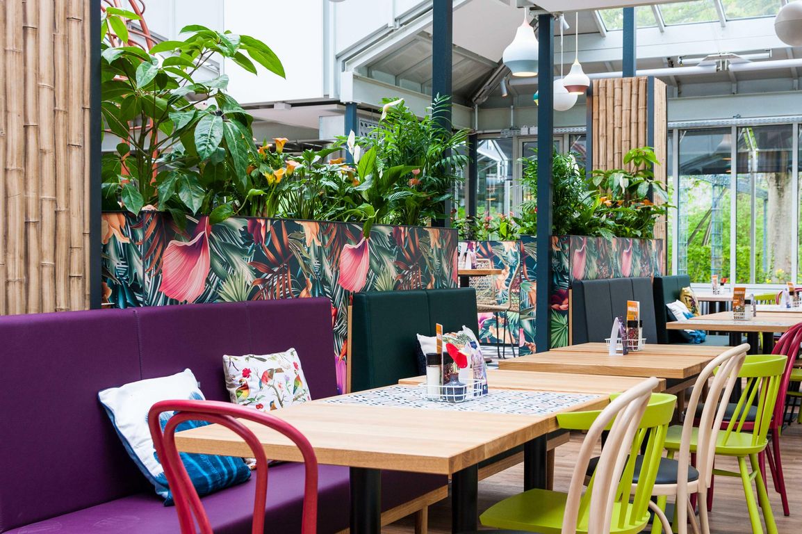 Seine Gäste empfängt das neue Amazonica zukünftig in farbenfrohem Ambiente, das sich thematisch an die tropische Umgebung des Parks anlehnt und gemeinsam mit dem Architekten-Team von Kitzig Interior Design umgesetzt wurde. Der nahezu komplett verglaste Gastbereich bietet rund 300 Sitzplätze. Die Außenterrasse bietet weitere 400 Sitzplätze. Durch die Aufteilung des Restaurants ist zudem Platz für kleinere und auch größere Veranstaltungen.