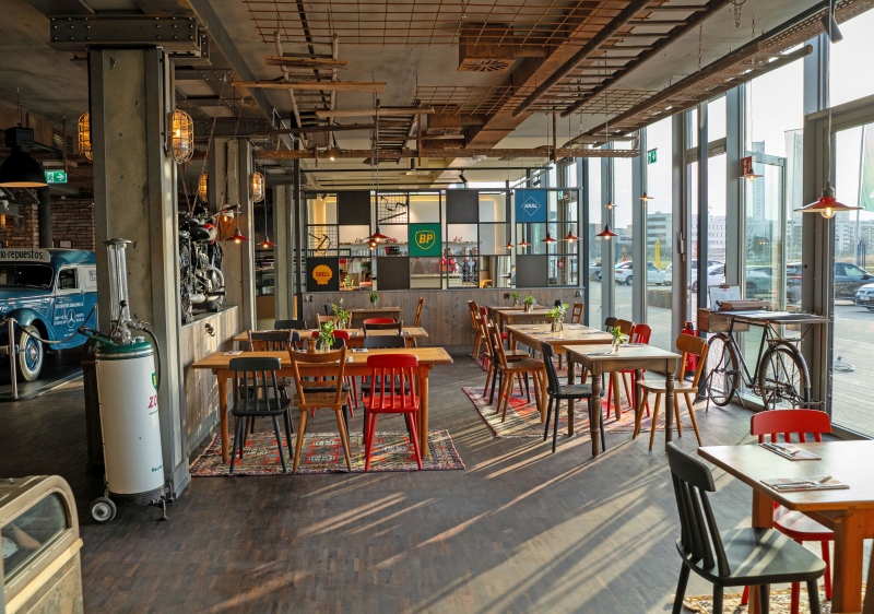 Restaurant mit automobil geprägter Gestaltung