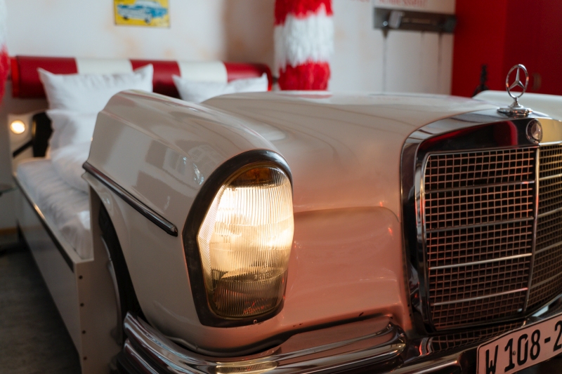 Parallel zur Restauranteröffnung wurde das bestehende Hotel im historischen Hauptgebäude überarbeitet. Wie aus der Mitteilung hervorgeht, wurden die bisherigen Räume des V8-Classic-Hotels neugestaltet und in das Konzept des Motorworld Inn integriert.