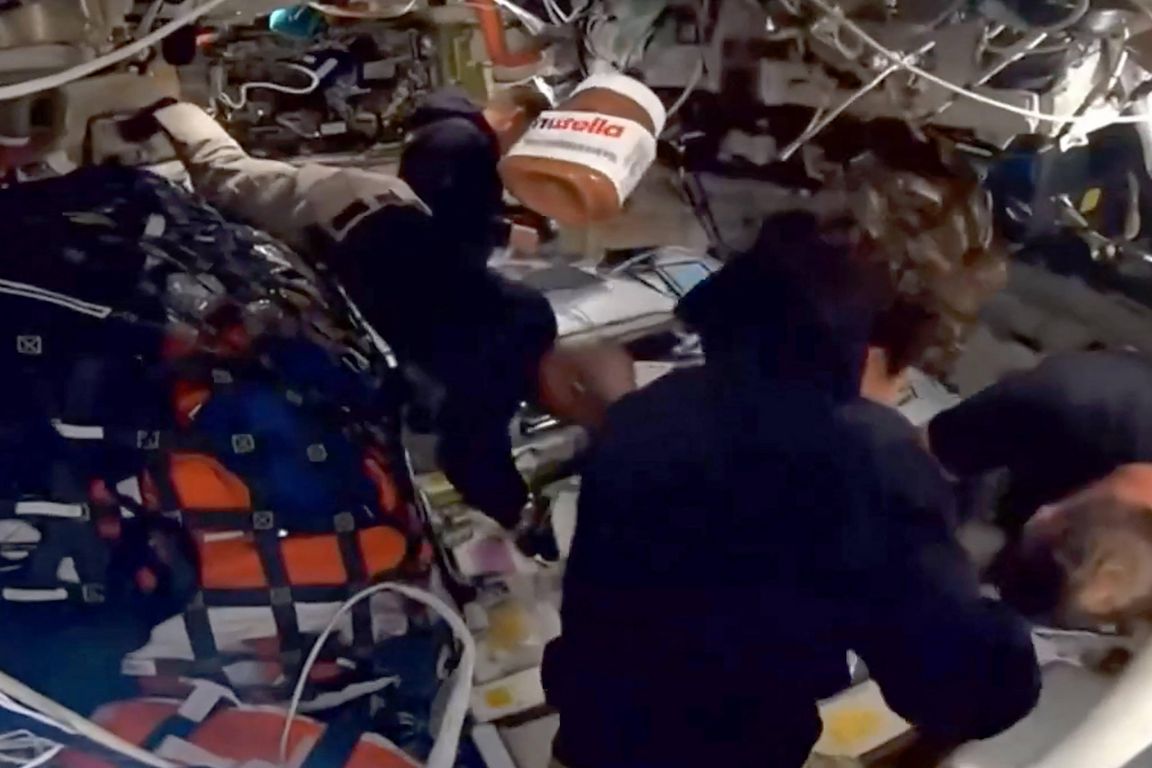 Während einer Live-Übertragung der Mission war nach Berichten zu sehen, wie ein Glas Nuss-Nugat-Creme durch die Kabine der Raumkapsel schwebte. Das Glas habe sich demnach aus einem Fach gelöst und sich schwerelos durch den Raum bewegt.