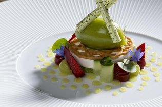 Als Beispiel für seine Handschrift wird die Altmühltaler Lachsforelle genannt – sanft bei 65 Grad gegart, mit Limettenöl mariniert, begleitet von einer Annabelle-Kartoffel und einer japanisch inspirierten Hollandaise, bei der Reisessig den Weißwein ersetzt.