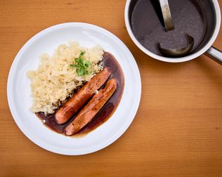Copien hat drei typisch bayerische Gerichte „plant based“ kreiert und kocht diese frisch an allen Wiesntagen in der Ochsenbraterei: Vegane Pflanzerl auf Erbsen-Basis und Soße mit Kartoffelsalat aus Bio-Kartoffeln. vegane Bratwurst auf Erbsen-Basis und Soße mit hausgemachtem Sauerkraut und veganes Schwammerlgulasch mit Pulled auf Erbsen-Basis mit Kartoffelknödel