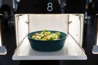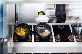 Einmal bitte Erdnuss-Udon-Stir-Fry. Ein paar Klicks auf dem Touchscreen, schon greifen zwei Arme nach verschiedenen Metallschüsseln, in die rohe, kleingeschnittene Möhrenstifte sowie Pak-Choi purzelt. Dann platziert der Roboter die Schüsseln auf Kochfeldern. Nudeln kochen, das Gemüse wird angebraten. Wenige Minuten nach Auswahl wird das asiatische Gericht in einer Mehrwegschüssel serviert. Nicht von einer oder einem Servicemitarbeitenden, sondern von einem Kochroboter.