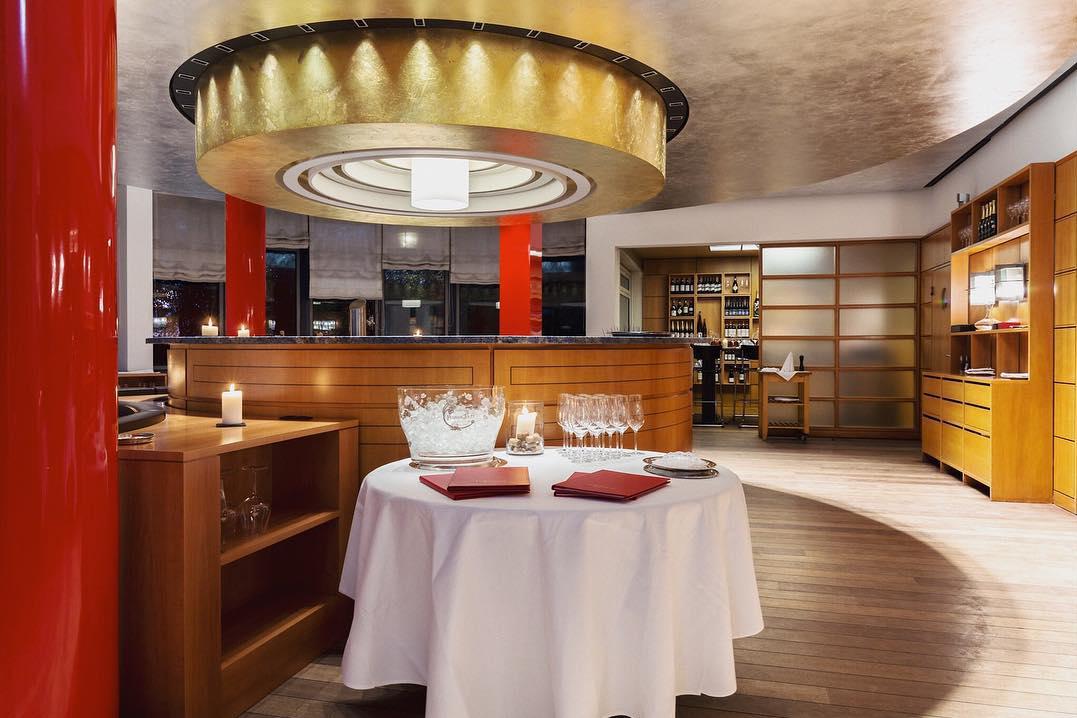 Das Le Canard gehört dem bekannten Architekten Meinhard von Gerkan, dessen Büro gmp von Gerkan, Marg und Partner auch in dem Gebäude beheimatet ist. Gerkan hat die Terminals am Flughafen Stuttgart, den Berliner Hauptbahnhof, den Hamburger Flughafen und den Flughafen Tegel gebaut. Auch die ursprünglichen Entwürfe des Flughafens BER stammen von Gerkan. Zwischen dem lang gestreckten Bürogebäude der Architekten von Gerkan, Marg und Partner – dem “Dampfer” – und dem Wohnhaus des Architekten eröffnet sich ein für jedermann zugänglicher Platz, der den Blick auf die Elbe und den Hafen freigibt. Von hier aus gelangt man über eine Brückenrampe, die den Weg zum Ereignis macht, zum Le Canard. Das Raumkonzept des Le Canard ist aus der Kreisgeometrie des Gebäudes entwickelt. Wie der Bug des Dampfers orientieren sich die Gasträume zum faszinierenden Hafenpanorama der Elbe. Die kaskadenartige Abstaffelung der Decke zum Mittelpunkt macht die Kreisform auch im Innenraum erlebbar. In der Wahl der Materialien, der Beleuchtung und der Farben ist hanseatisches Understatement und die Schönheit des Einfachen angestrebt.