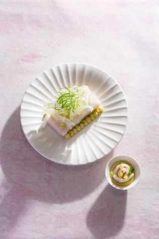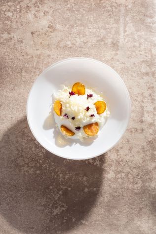 Lebensmittel, die sich nicht selbst anziehen lassen, bezieht das aktuell fünfköpfige Küchenteam von regionalen Betrieben und überregionalen Lieferanten, die nachhaltige Produktionswege garantieren. Die passende Weinbegleitung sowie eine Auswahl an alkoholfreien Optionen, darunter Sparkling Tea oder selbst gemachte Säfte, verantwortet Gastgeberin Marie Christin Baunach. Die Top-Sommelière war schon in früheren Jahren in der Überfahrt tätig, ehe sie zum nahegelegenen Restaurant Haubentaucher wechselte.