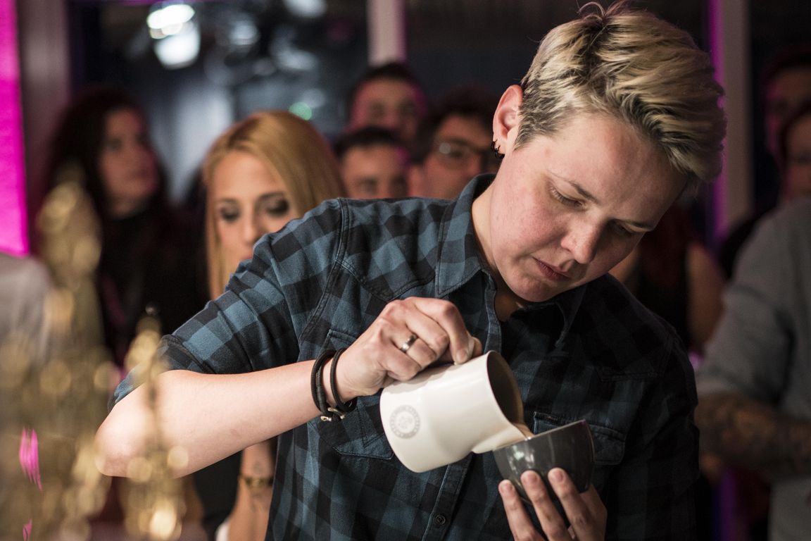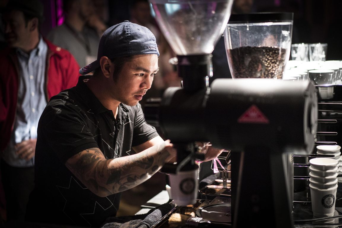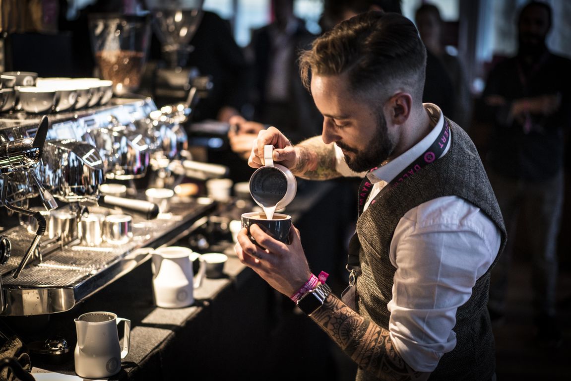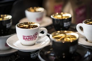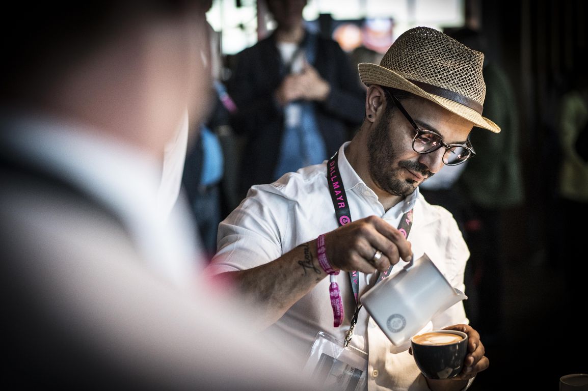 Los ging es mit einer klassischen „Order Round“ aus Espresso, Flat White, Cappuccino, Caffè Latte mit erkennbarer Latte-Art und zwei Drip-Coffee-Getränken. Jedes Getränk ohne Milchschaummotiv und jede übergelaufene Tasse wurde knallhart von der Jury aussortiert. Für das Viertelfinale hatte Dallmayr eine exklusive Sonderröstung bereitgestellt, aus der die Baristi je zwei Espressi, zwei Flat White und einen Signature Drink zubereiten mussten. Die Mühlen waren dabei nicht voreingestellt – unter Zeitdruck und den immer dichter um die Maschinen drängenden Zuschauern eine zusätzliche Herausforderung.