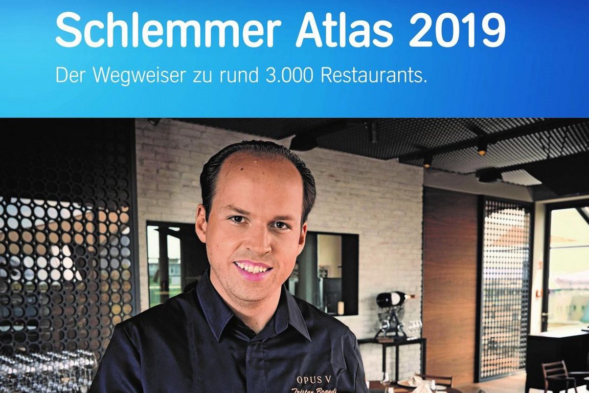 Das „Cover“ des neues Schlemmeratlas ziert Tristan Brandt Küchenchef des Restaurants Opus V in Mannheim. Neben Brandt wird auch Clemens Rambichler vom Restaurant Sonnora in Dreis erstmals als Spitzenkoch des Jahres ausgezeichnet. Insgesamt erhalten 15 deutsche Restaurants die Höchstnote.