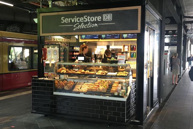 Im S-Bahnhof Berlin Bornholmer Straße wurde jetzt das neue Konzept von ServiceStore DB unter dem Namen „ServiceStore DB Selection“ eröffnet. Pendlern und Reisenden werden damit ab sofort auf zwei Bahnsteigen Backwaren, Snacks und Kaffeespezialitäten in Fairtrade-Qualität angeboten. Als warmer Snack gehören auch Hot Dogs zum Angebot. Die neuen rund sieben Quadratmeter großen Pavillons präsentieren sich in einer modernen Optik. Die Marke und der Markenauftritt wurden dafür neu entwickelt und unterscheiden sich neben dem Angebot damit auch optisch von dem klassischen Convenience-Store Konzept ServiceStore DB.