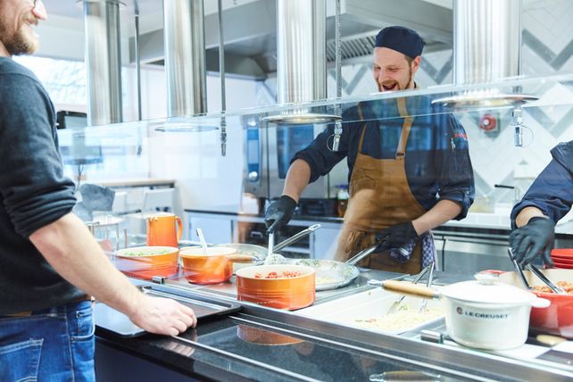 Zur Mittagspause geht man bei OTTO in die „Elbe“: Gemeint ist nicht der Fluss – denn der liegt ein paar Kilometer Luftlinie entfernt, sondern die gleichnamige Kantine auf dem Bramfelder Firmen-Campus. Die ist seit der Komplettrenovierung im Herbst 2017 modern und stylish und bietet Gerichte an, die so lecker sind, dass sie es durchaus mit denen einiger angesagter Hamburger Restaurants aufnehmen könnten. „Wir legen Wert darauf, dass der Gast sich bei uns wohlfühlt. Er soll gerne bei uns essen und dabei Kraft und Motivation für seinen weiteren Arbeitstag tanken“, sagt Niels Mester, Leiter des „Kochwerk powered by OTTO“, dem firmeneigenen Gastronomie-Betreiber.