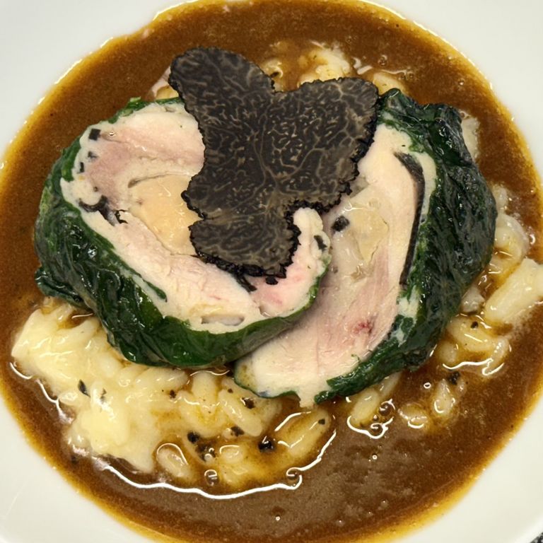 Ausgezeichnet für: Wachtelcrépinette auf Périgord-Trüffel-Risotto (Klassisch-Exquisite Küche)