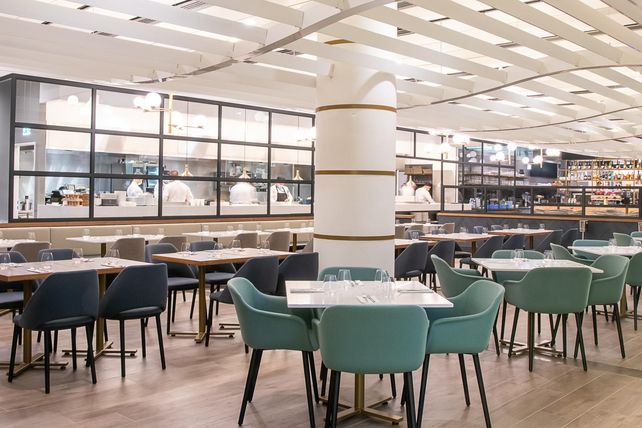 Im Restaurant überrascht Wolfgang Puck seine Gäste mit einer offenen Küche, die direkten Einblick in die Küchenkunst bietet. Die Menukarte ist geprägt von Pucks Signature Dishes wie etwa Tuna Tartar, Smoked Salmon Pizza mit Kaviar, Chinois Salad, Wolfgang Puck Burger, aber auch heimische Spezialitäten vom Wiener Schnitzel über Rinder Gulasch bis zu Kärntner Kasnudeln aus Pucks Heimatregion.
