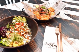 Der Name des Restaurants „Ahoi“ deutet schon an, wer die Hauptrolle im Menü spielt: Fisch und Seafood – etwa bei Fish’n’Chips, Sushi Bowl, Shrimps’n’Chips und den hausgemachten Sandwiches. Die Henssler-Brüder bleiben damit den Spezialitäten ihrer Hamburger Heimat treu und versehen diese natürlich mit einer Prise Henssler, wie es von den beiden heißt.