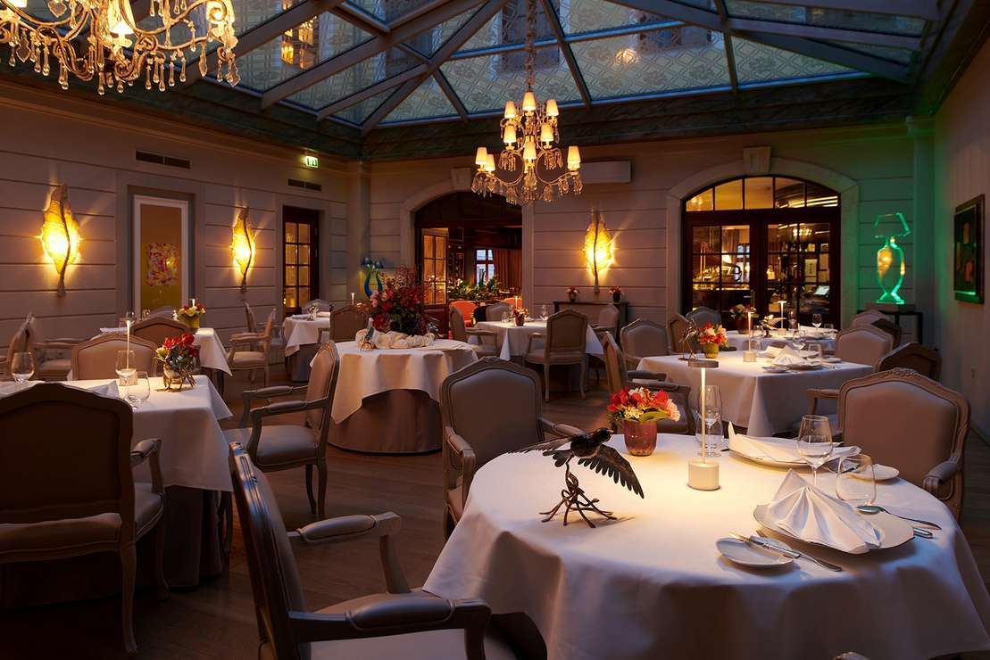 Das Gold ist weg, der Teppich und auch die Palmen. Kaum wiederzuerkennen meldet sich das Sternerestaurant Caroussel aus der Winterpause zurück. Dunkles Parkett; Wände, Skirtings und Stühle im einheitlichen Ton. Aus dem Wintergarten mit dem sommerlichen Flair eines toskanischen Innenhofes ist ein urbanes Forum für Kunst und Design geworden: geradliniger, jünger und zeitgemäßer.