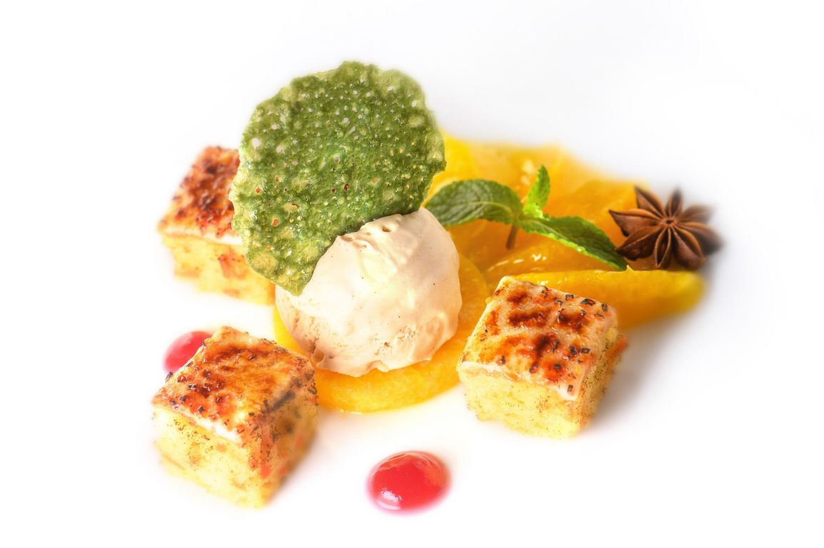 Doch neben dem Entertainment ist vom Sternekoch auch das passende Gourmet-Menü zu erwarten, das er passend zur Show kulinarisch präsentiert. Den Auftakt macht norwegischer Mowi Lachs als Dreierlei in „California Style“ an Erbsen-Wasabicreme mit Koriandermayonnaise, Tobiko Kaviar, gebackenem Wan Tan und Sesam. Der zweite Gang Hokkaido-Süppchen mit Ingwer wird als Terrine zum Selbstschöpfen serviert. „Unsere Gäste sitzen jeweils an großen Tischen mit anderen Gästen zusammen. Wir möchten damit die familiäre Atmosphäre unserer Show unterstreichen und den Austausch am Tisch fördern.“