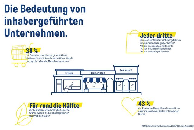 Ob der Italiener nebenan, das Café an der Ecke oder die Pension im Viertel, in der jedes Zimmer seinen eigenen Charme hat: Inhabergeführte Gastronomiebetriebe und Hotels sind wichtig für die Wirtschaft und den Flair vor Ort. Sie bereichern mit ihrer Vielfalt das tägliche Leben der Menschen, das bestätigen 38 Prozent der in Deutschland befragten Verbraucher in der diesjährigen Metro-Studie anlässlich des „Own Business Days“. So ist der lokale Standort für 56 Prozent sogar der wichtigste Faktor dafür, ein kleines oder mittelgroßes Unternehmen zu bevorzugen, weil sie so Hersteller in der Region unterstützen. Ein ebenso wichtiges Entscheidungskriterium ist für mehr als die Hälfte der Deutschen (54 Prozent) das nachhaltige Handeln des Unternehmens.