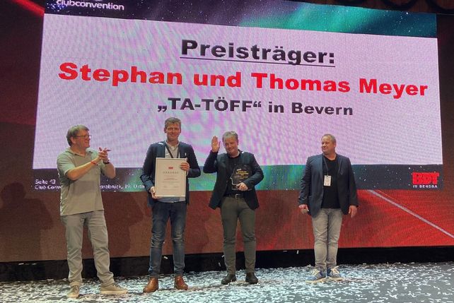 Der Bundesverband deutscher Discotheken und Tanzbetriebe e.V. (BDT im DEHOGA Bundesverband) hat bei dem Nightlife-Branchenmeeting Club Convention die höchste Auszeichnung der Szene verliehen. Der „Discotheken-Unternehmerpreis“ geht in diesem Jahr an Stephan und Thomas Meyer vom „Ta-Töff“ in Bevern bei Bremervörde.