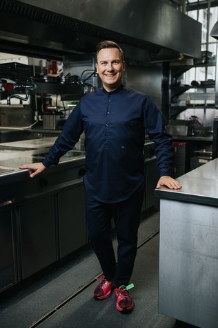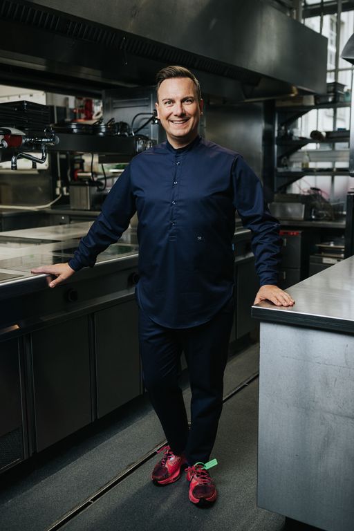Tim Raue zählt zu den bekanntesten Köchen des Landes. Jetzt bringt der gebürtige Berliner eine eigene Kollektion Arbeitskleidung auf den Markt. Für die Herstellung der Hosen und Hemden in Blau, Schwarz oder Salbeigrün setzt er auf das mittelständische Familienunternehmen „Ber-Bek" aus Mecklenburg-Vorpommern, das bereits seit 2008 die Arbeitskleidung für Tim Raue und sein Team produziert. Klar, dass auch die Mitarbeitenden des Restaurants Tim Raue damit ausgestattet sind.
