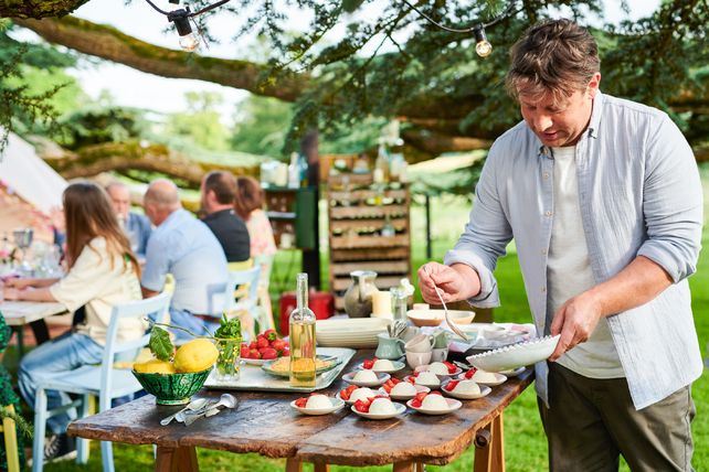 Nach einer langen Zeit voller Entbehrungen kehrt das Leben für viele Menschen allmählich in die Normalität zurück und es ist wieder möglich, gemeinsam mit der Familie oder den Freunden an einem Esstisch zu sitzen. Auch der britische Starkoch Jamie Oliver freut sich jetzt bei RTL Living darauf, ausgefallene Feste und Geburtstage oder auch sein Hochzeitsjubiläum gebührend nachzuholen und präsentiert in seiner neuen Koch-Reihe Rezeptideen für diese und andere Anlässe. Oliver stellt in seiner neuen Koch-Reihe jedoch nicht nur Rezepte vor, sondern er lädt auch besondere Gäste zu sich ein, die sich in letzter Zeit sozial engagiert haben: bei den Essenstafeln, in den Impfzentren oder im medizinischen Bereich.