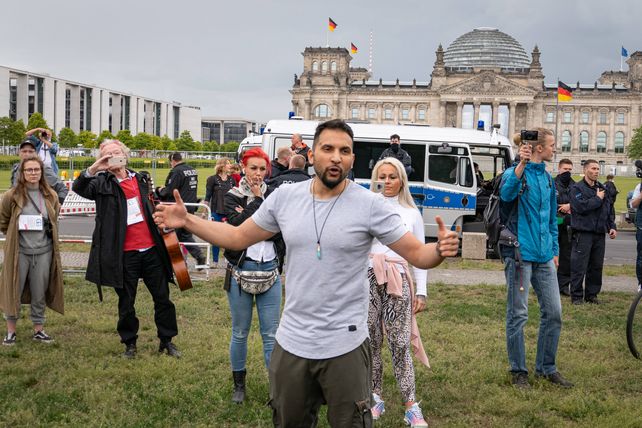Nach Polizeiangaben hatte sich am Lustgarten in Berlin-Mitte eine Vielzahl von Menschen im dreistelligen Bereich um Hildmann versammelt. Es sei der Eindruck entstanden, er wolle mit diesen losgehen - es sei aber nicht gestattet, einen Aufzug durchzuführen. Die Polizei habe ihn darauf hingewiesen und Maßnahmen angekündigt, die dann auch umgesetzt worden seien, so die Sprecherin. Hildmann sei aber wieder entlassen worden - und Einsatzkräfte hätten ihn dann zu dem Ort geleitet, an dem er eine Kundgebung abhielt.