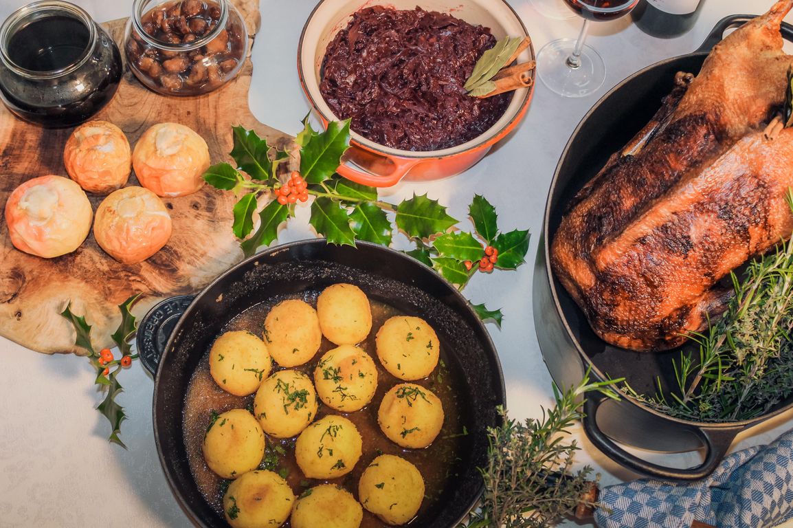Die Gänsezeit beginnt in der Schlossküche im Althoff Grandhotel Schloss Bensberg am 4. November 2020 mit Oldenburger Freiland-Gans. Nach traditioneller Art runden Sauce, Maronen, Rotkohl, Bratäpfel und Kartoffelklöße den Gänsebraten ab. Damit die Beilagen ihren Geschmack entfalten können, legt Küchendirektor Marcus Graun eine genaue Anleitung für den perfekten Genuss bei. Erhältlich ist die Gans für 185 Euro inklusive Beilagen für vier Personen zur Abholung. Eine Lieferung nach Hause ist im Raum Bergisch- Gladbach mit Voranmeldung und einer Vorlaufzeit von 48 Stunden für 25 Euro möglich.