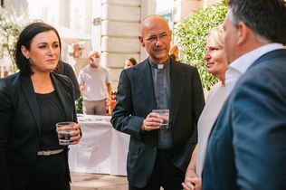 Dompfarrer Toni Faber segnete das neue Restaurant und alle Anwesenden vor einer Graffiti-Darstellung der Madonna, angefertigt von "CONCRETE. The Graffiti Agency".