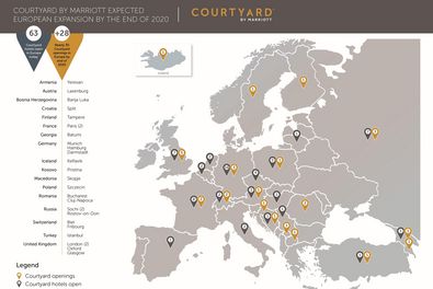 Courtyard verspricht sich, mit Plänen zur Eröffnung von fast 30 neuen Hotels bis Ende 2020, ein beschleunigtes Wachstum auf dem europäischen Markt. Neben der Ausweitung des Portfolios in etablierten Märkten setzt Courtyard auch auf aufstrebende Länder wie Kroatien, Armenien und Georgien.
