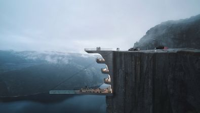 Das Istanbuler Architekturbüro Hayri Atak hat spektakuläre Pläne für ein Boutique-Hotel veröffentlicht, das an der norwegischen Klippe Preikestolen hängt. Zum Hotel soll auch ein Glasschwimmbad gehören, das schwereloses Planschen über dem Abgrund ermöglicht. Ob die Pläne jemals umgesetzt werden, ist mehr als fraglich. Der Architekt hat eine schöne Werbung.