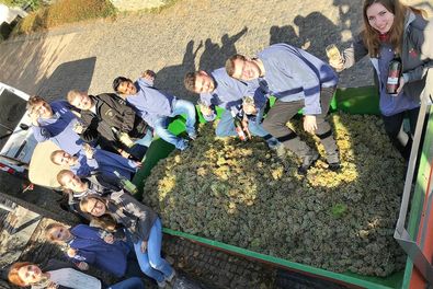 2016 führte das Romantik Hotel Schloss Rheinfels den bundesweit ersten Schulweinberg für Hotel-Auszubildende ein. Jetzt wurde die diesjährige Traubenlese „nach Hause“ – beziehungsweise in den Keller von Winzer Stepan Fendel vom Partner-Weingut Weiler-Fendel in Oberwesel – gebracht.