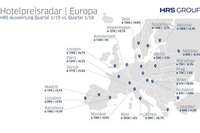 Die Hotelpreise in Deutschland haben sich im ersten Quartal positiv entwickelt. Zu diesem Ergebnis kam das Hotelportal HRS bei seiner Preisanalyse. Insgesamt sind die Zimmerpreise um knapp zwei Prozent auf 90 Euro im Vergleich zum Vorjahreszeitraum gestiegen. Den größten Sprung in Deutschland machte München.