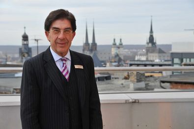 Bertram Thieme ist Deutschlands dienstältester Hoteldirektor. Jetzt gibt Thieme, vom Dorint-Hotel in Halle, nach 42 Jahren die Zimmerschlüssel ab und geht in den Ruhestand. Der 69-Jährige leitete Hotels in Halle zu DDR- und bundesdeutschen Zeiten. Genscher war der Lieblingsgast des ausgebildeten Krankenpflegers.