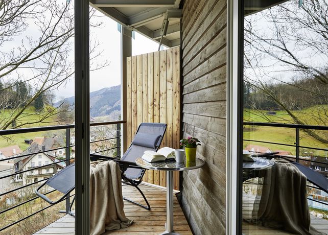 Das Haus verfügt über ein nachhaltiges Energiekonzept, das die Wärme- und Stromversorgung über erneuerbare Energien erzeugt. So wird Wärme über eine Holzhackschnitzelanlage erzeugt, die Stromversorgung wird durch eine Photovoltaikanlage unterstützt. Die Architektur des Hotels zeichnet sich durch klare Formen sowie modernes und dennoch gemütliches Interieur aus. Beim Umbau wurde eine Symbiose zwischen dem ursprünglichen Interior-Design und zeitgenössischen Elementen geschaffen. Die 63 lichtdurchfluteten Zimmer und Suiten setzen mit Naturmaterialien und beruhigenden Farben wohltuende Akzente. Alle Zimmer verfügen über einen Balkon und sind nach Süd-/Südwest ausgerichtet. Realisiert wurde der Umbau unter der Leitung von Thomas Schindler (Schindler Architektur GmbH), der in der Region beheimatet ist. Dabei wurde großer Wert darauf gelegt, das innovative und kreative Potenzial der örtlichen Betriebe zu nutzen.