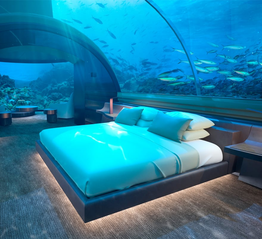Im Conrad Maledives Rangali Island sind die Gäste eingeladen, in der Unterwassersuite Makura zu erleben. Diese zweigeschossige Residenz mit drei Schlafzimmern liegt fast vollständig unter Wasser und bietet den Gästen ein Erlebnis, das sie sicher nicht so schnell vergessen werden.