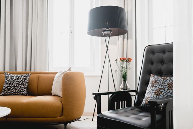 Die lichtdurchflutete Suite L mit 3 Fensterachsen besticht durch seine Balance zwischen alt und neu, farbig und monochrom, kokett und zurückhaltend. Neben den zeitgenössischen Möbelentwürfen von Spaniens Stardesigner Jaime Hayon – der sich dafür von Josef Hoffmann inspirieren ließ – finden man auch Originale Stücke aus 1910 bis 1930. Weiters runden Josef Hoffmann-Nachbauten des Österreichischen Möbelherstellers Wittmann das Sitz- und Liegespektrum der großzügigen Suite ab. Ein luftiger Volant im Raum erlaubt ein kokettes Versteckspiel und offenbart dahinter eine freistehende Badewanne mit Rundumblick in der Suite.