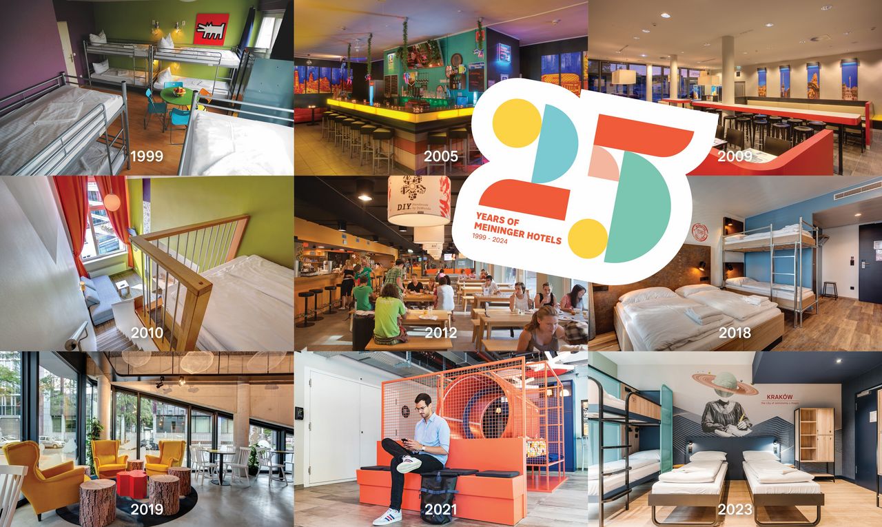 Meininger Hotels feiert 25-jähriges Bestehen und blickt auf die Firmengeschichte zurück, denn seit der Eröffnung des ersten Hotels in der Meininger Straße in Berlin im Dezember 1999 ist das Unternehmen stark gewachsen: von der Herberge zu einem hybriden Hotelkonzept, von einem einzelnen Standort zu einer Marke mit 36 Hotels in 26 europäischen Städten. Grund genug, das letzte Vierteljahrhundert zu reflektieren, wichtige Meilensteine der Unternehmensentwicklung hervorzuheben und einen Blick in die Zukunft zu werfen.