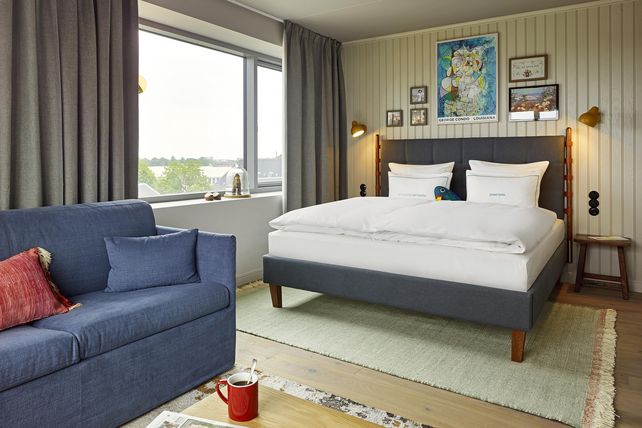 Das aufgeschüttete Areal im Kopenhagener Hafen wurde lange Zeit als Papierlager genutzt und liegt in direkter Nachbarschaft der königlich dänischen Oper. Zuletzt war die Insel Standort eines bekannten Streetfood-Markts. Als Gegenpol zum hektischen Treiben in der Innenstadt orientiert sich das Ambiente des neuesten 25hours Hotels am typischen dänischen Sommerhaus – hier stehen die Zeichen auf Entspannung und Erholung.