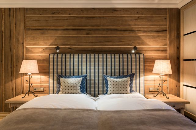 Anna-Maria Fäßler: Genau. Wir wollten traditionell bleiben, aber trotzdem einen gewissen Chic haben und unseren eigenen Stil finden. Das war uns ganz, ganz wichtig. Innen wie außen. Es wurde schon immer in der Sonnenalp mit sehr guten Materialien gearbeitet und nun ging es um die Veränderung im Design. Wir haben mit vielen Farben gespielt, mit Stoffen, mit den Möbeln… wir haben sehr wenig dazugekauft, sondern alles aufwändig saniert und aufbereitet. Materialien aus der Region zu verwenden zieht sich bei uns wie ein roter Faden durch das Haus. Für mich spielen die Natur und die Farben der Natur eine große Rolle. Und dass wir bei unseren Wurzeln bleiben.