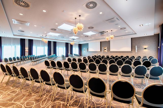 Der Konferenzbereich wurde von 50 auf 450 Quadratmeter erweitert und zählt jetzt sieben lichtdurchflutete und flexibel gestaltbare Tagungsräumen. Die Räume können direkt mit dem Pkw befahren werden und als Showrooms genutzt werden.