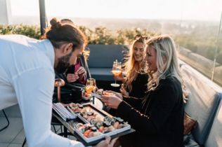 Die Farbe Orange steht seit 50 Jahren für Lindner und so flanierten die Gäste des Abends über den „Orange Carpet“ zum glamourösen Empfang. Nach kulinarischen Highlights und DJ-Sets in der Lobby feierten die Gäste im spektakulären Setting von Otto’s Skybar mit 360-Grad-Blick über die Dächer der Stadt weiter. Für die kurzweilige Unterhaltung der Gäste sorgten verschiedene Showacts. Ein Höhepunkt des Abends war die in dieser Form einzigartige gemeinsame Performance von Musikproduzent & Kult-DJ Mousse T und dem international bekannten Ausnahme-Trompeter Till Brönner.