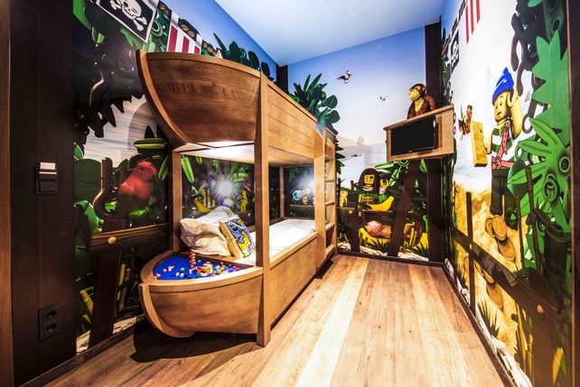 Das Legoland in Günzburg, nahe Ulm, Pirateninsel Hotel für 26,6 Millionen Euro eröffnet. In den Hotel, auf einem Areal so groß ist wie sieben Fußballfelder, können 594 Kinder gleichzeitig übernachten. Das Legoland-Feriendorf hatte 2017 eine Auslastung von über 92 Prozent.