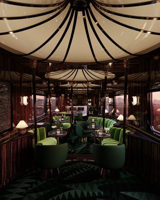 Erstmals präsentiert Orient Express das Interieur der Gesellschaftsbereiche. Dazu zählt der künftige Bar-Waggon: Unter großen Lichtkuppeln im Stil des Zweiten Kaiserreichs bildet eine gläserne Theke den Mittelpunkt des Geschehens und ist eine Hommage an den bekanntesten Glaskünstler des Art Déco sowie des Art Nouveau, René Lalique. Eine Uhr an jedem Tisch kündet die Cocktailstunde und Dinnerzeiten an. Der Service erfolgt wortwörtlich auf Knopfdruck: Einer der zwei Rufknöpfe ist dabei für einen Service reserviert – drückt man ihn, wird perlender Champagner serviert.