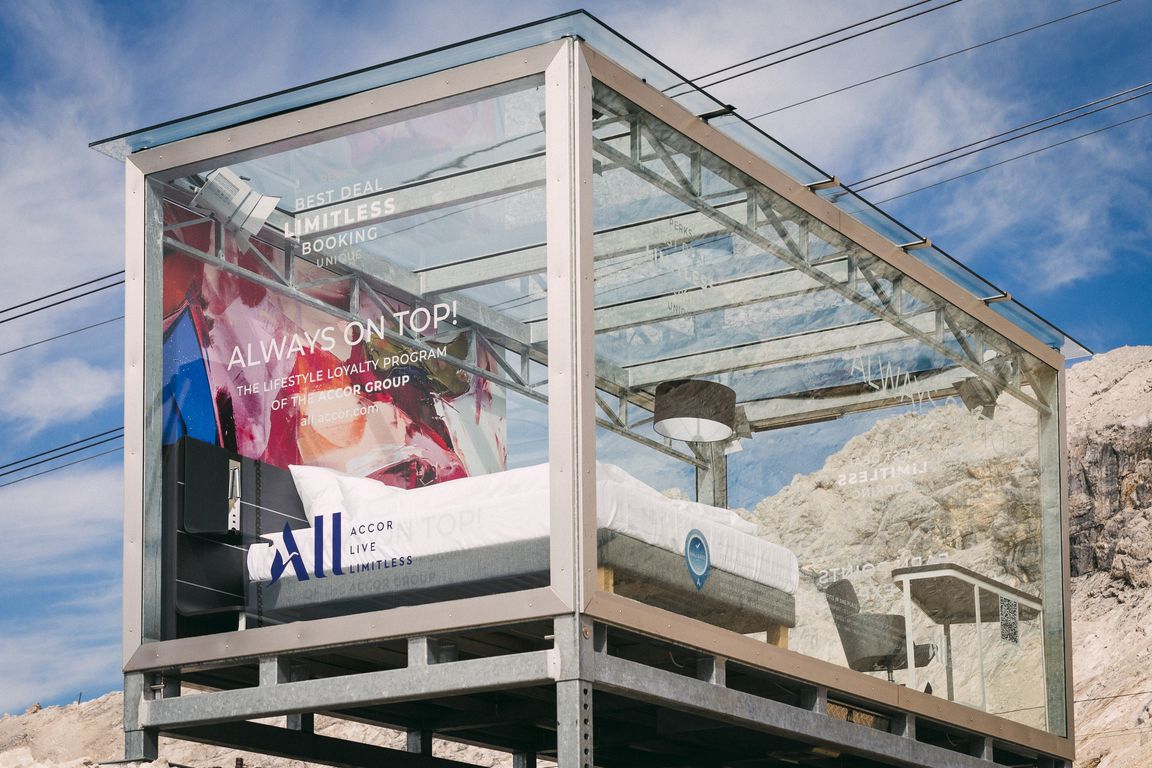 Mit ALL – Accor Live Limitless verspricht Accor ein Angebot an Erlebnissen, das über die Hotels der Gruppe hinausgeht. So wurde für die jüngste Zusammenarbeit auf dem Zugspitzplatt ein ganzes Hotelzimmer installiert. Übernachtet werden kann hier zwar nicht. Dafür können sich ALL-Mitglieder das vielleicht spektakulärste Frühstück im Hotelbett im neuen Pop-Up-Zimmer sichern. Und wer sich vor Ort auf den Weg zur Glaskonstruktion macht, wird als ALL-Neuling mit 500 Punkten auf dem persönlichen Konto belohnt, direkt einlösbar beim nächsten Aufenthalt in einem der Hotels von Accor.